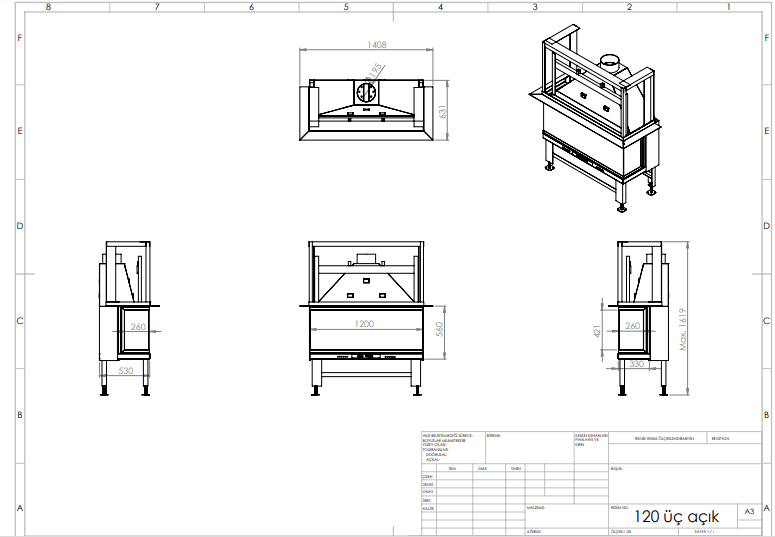 120 cm U tipi Şömine Haznesi