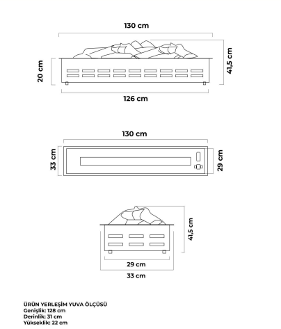 130 CM 3 Boyutlu Elektrikli Şömine modelimizin özellikleri ;