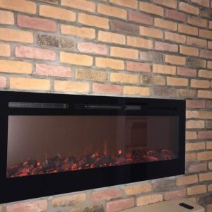 Kültür taşı kaplama içine 100 cm elektrikli şömine gömme şeklinde kullanılmıştır.