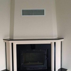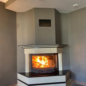 - Köşe şömine modelimizin dış küpeşteleri limra taşı ve siyah granitten yapılmıştır.