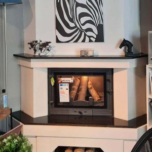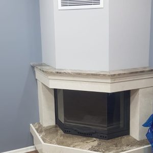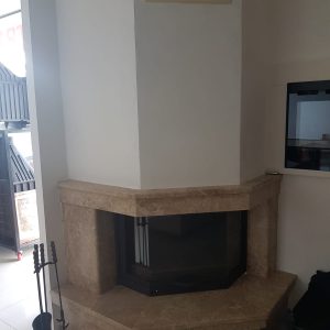 - Köşe şömine modelimizin dış küpeşteleri traverten mermerden yapılmıştır.