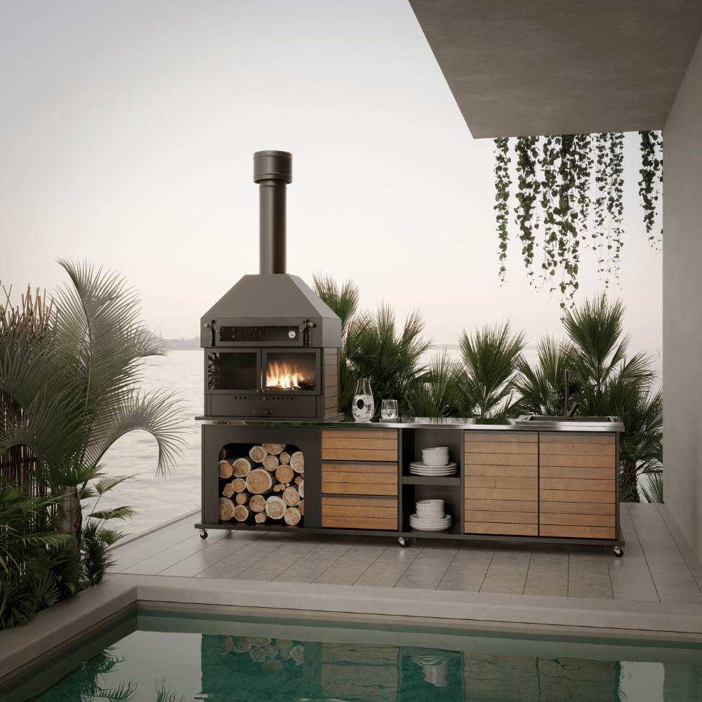 Krom Tezgahlı Fırınlı Metal Barbekü 280 cm BŞB08