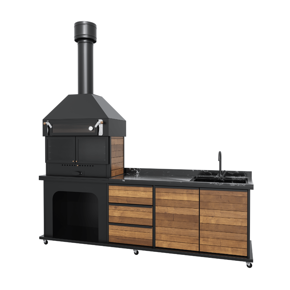 Mermerit Tezgahlı Fırınlı Metal Barbekü 240 cm BŞB09
