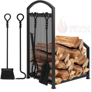 Metal Odunluklu Tel Detaylı Şömine Maşa Takımı BŞMT201