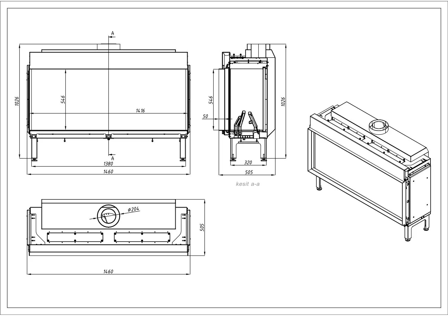 - Baca Boru Ağzı: 100/150 mm / Çap