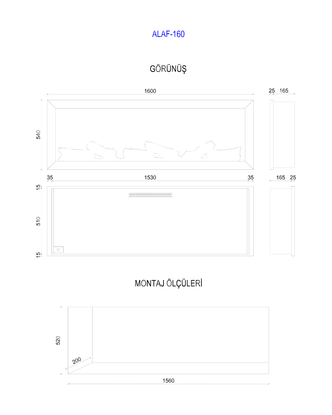 - Montaj Ölçüsü: 156 cm x 52 cm x 20 cm ( G x Y x D)