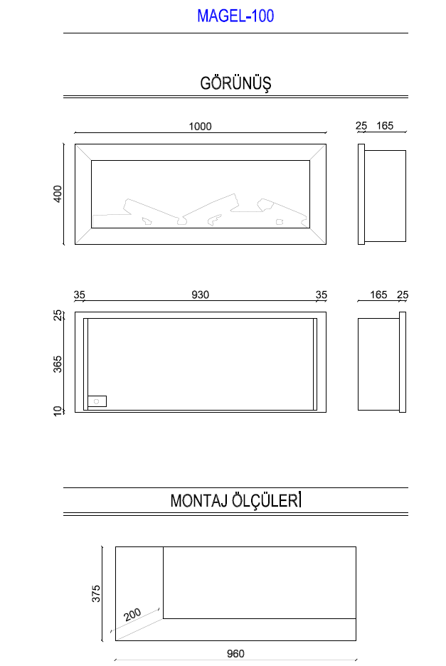 - Montaj Ölçüsü : 96 cm x 37,5 cm x 20 cm