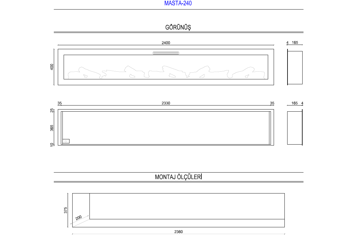 - Montaj Ölçüsü : 236 cm x 37,5 cm x 20 cm